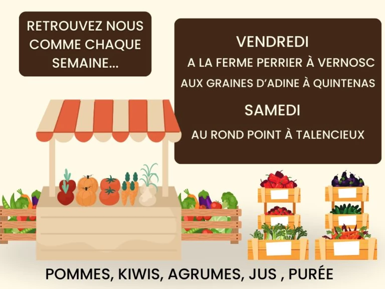 Vous pouvez trouver nos produits lors de nos marchés à la ferme: